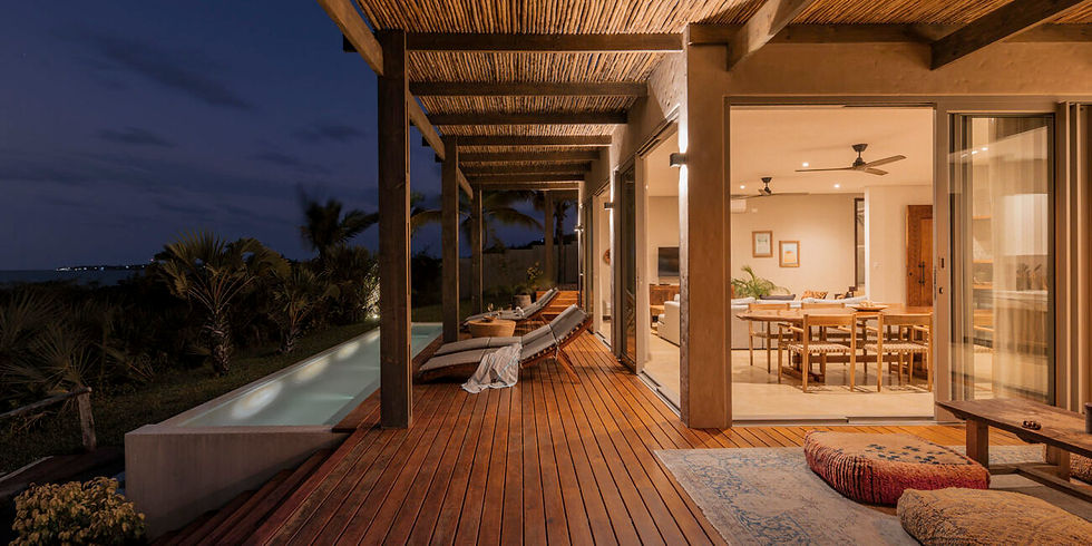 VillaTwo is an exquisitely designed luxury beachfront villa on the shoreline of north beach Vilanculos. With the highest elevation on the property the ocean views are breathtaking from the moment you walk through the door. VillaTwo has three double bedrooms, an infinity pool and rooftop space with spectacular views over the islands of the Bazaruto Archipelago National Park and Vilanculos bay.
